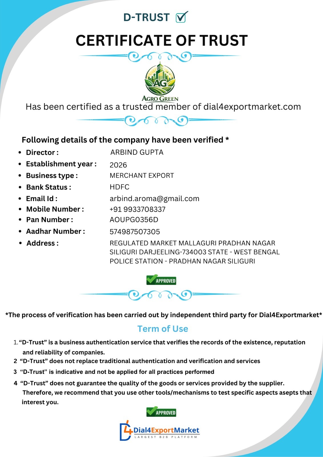 Agro Green is a trusted name in the agri-produce sector, dedicated to supplying premium-quality Makhana (Fox Nut) and fresh Pomegranates to domestic and international markets. Rooted in sustainable farming practices, we work closely with experienced farmers to ensure every product meets high standards of purity, taste, and nutrition. Our Makhana is carefully sourced, hygienically processed, and packed to retain its natural crunch and health benefits. Similarly, our pomegranates are grown in fertile soils, hand-picked at the right stage of ripeness, and delivered with freshness intact. At Agro Green, quality control, ethical sourcing, and customer satisfaction are our top priorities. We combine modern processing techniques with traditional agricultural wisdom to deliver products that are wholesome, nutritious, and reliable. With a commitment to consistency and excellence, Agro Green aims to build long-term partnerships and promote healthy living through nature’s best produce.